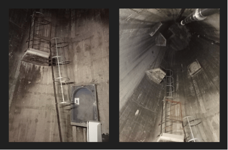 Monsieur le maire nous autorise à entrer à l’intérieur du château d’eau.