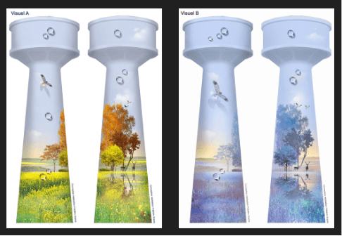 Le comité de sélection, Mairie de Boinville-en-Mantois et GPS&O ont eu à choisir entre plusieurs artistes, le choix de M. Gracia a été unanime. Le visuel bleu l’a emporté. (Dessins exquises de M. Gracia)