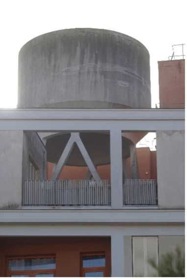 Le bâtiment ayant été réhaussé, le château d’eau est moins visible.