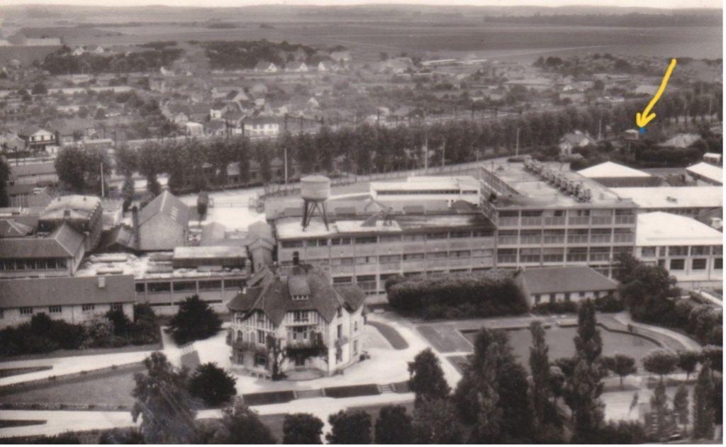 Certaines cartes postales anciennes montrent le bâtiment sans château d’eau, ce dernier apparait sur des cartes datées de 1934.