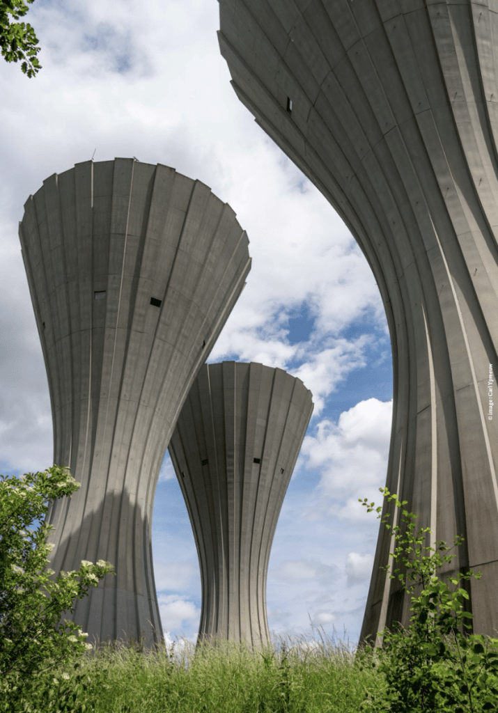 Photo des trois châteaux d’eau du Parc départemental du Sausset. Crédit photo Carl Ypreeuw